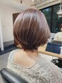 ショートボブのスタイル。骨格に合わせてカットしていくと自然な丸みが出てきます。毛流れをキレイに見えるような自然なスタイリングで落ち着いた大人女性のヘアスタイルを作れます!