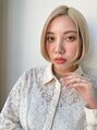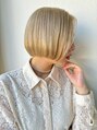 透明感あふれるハイトーンベージュの切りっぱなしショートボブ。ダブルカラーで理想の発色を実現し、肌色を明るく見せる効果も。毛先のまとまりも良く、扱いやすいスタイルです。初めてのハイトーンにも挑戦しやすい!