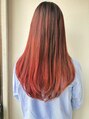 透明感あふれるレッドカラー。毛先グラデーションロングで、小顔効果も◎。計算されたデザインカラーで、顔周りをすっきりと見せます。