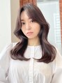 韓国ヘア レイヤーロンググレーベージュ 前髪パーマ