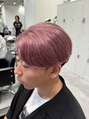 ピンクシルバーブリーチセンターパート刈り上げ