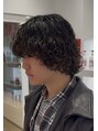 ミディアム前上がりボブメンズ波巻きパーマスパイラルプードル