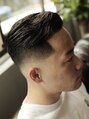 ハードパート(分け目のラインを剃って直線に整える技術)でスタイルにキレを持たせたアンダーカットスタイル。フェード/スキンフェード/刈り上げ/バーバースタイル/ポマード/ポンパドール/リーゼント/アンダーカット/マット仕上げ/スポーツ刈り/メンズカット