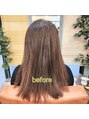 白髪染めは毎月、縮毛矯正は4か月に一回されているお客様です!今回は髪質改善エッセンスゼロと同時に施術です!パサつきがおさまりツヤ髪に(*^^*)