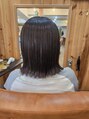 約4ヵ月分の根元の縮毛矯正と毛先は髪質改善トリートメントです!バッサリ切ることによって今までよりクセが出やすくなるので、今回は重めボブにしました!