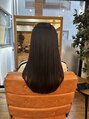 伸びてきた根元を1年ぶりに縮毛矯正でしっかりボリュームダウンです!毛先の明るくなった毛先を暗めにトーンダウンしてより艶のある綺麗な髪に(*^^*)毛先は髪質改善トリートメントで、乾かしただけでまとまる楽チンスタイルに♪是非お試しください!