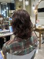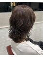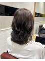 肩ラインで揺れる、柔らか質感のウェーブスタイルコテ巻き風に見えるけど、実はしっかり形状記憶のコテ巻き風パーマ!朝のスタイリングも、濡らしてオイルをなじませるだけで完成するから時短にも◎