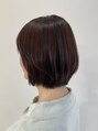 赤みカラー、ピンクブラウンで艶々に♪毛先用のカラーはダメージないケアカラーで。ボブスタイルは1番お手入れが楽かも!?ぜひ挑戦してみて下さいね!
