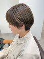 収まりの良いタイトなショートは耳かけしてもキレイに見えるのがポイントで、ピアスやイヤリングとの相性も◎伸びてきても形が崩れにくいのも人気の理由です♪カラーは明るめのベージュですが、オリーブを混ぜてくすみ感と柔らかもプラスしています◇