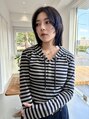 前髪は長めのレイヤーカットです!トップにレイヤーを入れることで軽さを出しています。暗めのカラーでもエアリー感があってかわいいです!