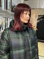 顔まわりにしっかりレイヤーをいれたワインレッドカラーのスタイルです。【お気に入りのスタイルはブックマークして、上記のクーポンよりご予約下さい】