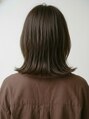 肩に当たって自然に跳ねる長さを活かした、おしゃれな外ハネロブ。顔周りのレイヤーで、結んでも下ろしても小顔に見える万能スタイルです。暗髪でも重たく見えないグレージュカラーで、大人女性のこなれ感と透明感を演出します。