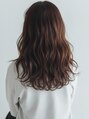 透明感のある暗髪グレージュと丸みのあるパーマロング。長めの前髪あり設定で小顔効果も◎。髪質改善ストレートを組み合わせれば、手触り抜群の艶髪に。耳掛けアレンジで、すっきりとした大人っぽい表情も楽しめます。