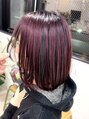ビーガンブリーチとビーガンカラーでデザインするアンブレラカラー♪頭皮にも環境にも優しいデザインカラーです![津田沼 ヴィーガンカラー アンブレラカラー パープル 暖色 ボブ デザインカラー インナーカラー]