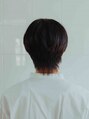 後頭部を綺麗にみせるように、前下がりのシルエットでカット頬ぼねが隠れるスタイルなので小顔効果も狙えます。センターパートでかき上げた前髪と軽く目にかかる髪の毛が大人のセクシーさを襟足は刈り上げずにナチュラルにすることで、優しい印象に