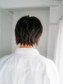 あえて刈り上げないナチュラルなショートスタイル。前髪をおろして重すぎないワイドバングで分けても流してもどちらもできるような長さになっています!後ろはやや長めの襟足で、外にはねさせて少し遊びを入れてもかっこよく決まります!