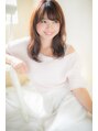 コテでコロンと巻いたような大きめのカールがピュアなグラマラスさをだして大人かわいいふわミディスタイルです。目の上ギリギリの厚めバングで小顔効果も☆前髪の割れや浮グセなどのお悩みはクロスパーマで問題解決します!中村ブログ見てください