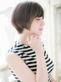 ★お気に入りスタイルは【ブックマーク】を★グラデーションボブベースの丸みショート。スッキリフォルムでコンパクトにまとめつつ、似合わせカットで美人顔に。長めの斜めバングで目元を印象つけて目力UP!サイドの毛流れで小顔見せもバッチリです☆