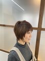 デザインショート顔周りにレイヤーと、梳きばさみを使わないで行う質感調整で、動きのあるスタイルに!