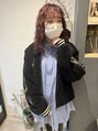 村上/くるくるパーマピンクレッドブリーチなしダブルカラー小顔