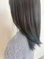 毛先にブリーチ履歴のあるお客様です!ポイントカラーで青みのあるグリーン♪可愛いです!