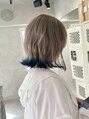 ブリーチ&ダブルカラー/レイヤーボブ/エンド/水色/ベージュ