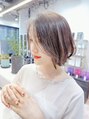 ブリーチなし透明感グレージュ大人ボブ/シースルーバング/前髪