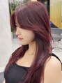 レイヤーカット かきあげ前髪 レッドブラウン