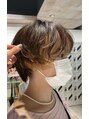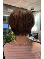 丸みのあるショートカットのベースにドライの時は毛先が柔らかく見えくせ毛のような質感で、ウェット時には動きのあるニュアンスのあるパーマをかけました。クルクルではないので特別扱いにくくなったりせず初めてのパーマにはピッタリのスタイルです◎