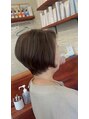 前髪長めで流してクールだけどお客様の可愛らしさも活かしたクールで可愛いショートスタイル。カラーはハイライトもたくさん入っているのでふんわりと柔らかく立体感もでるグレージュ系に
