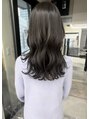 カット/ワンレングスでも軽く見えるように前上がりに。フェイスレイヤーを入れ顔まわりの動きをだす。カラー/暗い中にも透明感のあるダークアッシュ系。