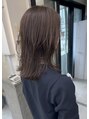 カット/肩に当てて自然にハネる位置でカットし、トップのみレイヤーカラー/透明感のあるベージュ系。