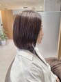 カットはほぼレイヤー無しのミディアムボブをベースに顔周りは馴染みやすいように柔らかくレイヤーを入れております♪カラーは少し落ち着いたくすみベージュで透明感と褪色防止に濃いブラウンを入れております☆