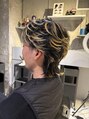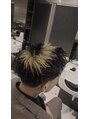 - 飯田橋/フェザーショート 刈り上げセンターパート ホワイトブロンド エンドカラー 波打ちパーマ
