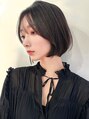- 韓国風ボブで簡単にスタイリングできます。スタイルカラーは透明感のある暗めグレージュ系です。