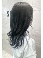 以前の全頭ブリーチをいかしてベースカラーとインナーカラーで雰囲気を変えたスタイルベースは透明感のグレージュ、インナーはブルーで落ち着いた印象に