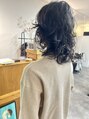 地毛とパーマが程よいバランス☆緩めだけど、カール感があるようにデザインしております!カットはレイヤースタイルで軽やかさを出してます☆スタイリングは、髪が濡れている時がベスト!!ジェルやバームで束感を◎