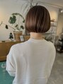 襟足ギリギリのミニボブ!ベージュのようなブラウンのようなオレンジぽいような…可愛いニュアンスがいっぱい詰まったスタイルです☆耳にかけてスッキリとしたミニボブはおしゃれ女子に人気スタイルです♪