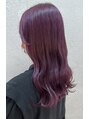 ツヤ感 パープルガーネットブリーチ1回ベースです。切りっぱなしでストレートでも巻き髪でも楽にまとまります!巻き髪だとより色味がキレイに見えます◎