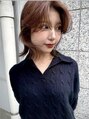 顔まわりにレイヤーを入れたくびれミディ。やわらかいシナモンブラウンでツヤと抜け感をプラス。巻きすぎないニュアンス感が大人可愛いポイント。