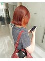 ブリーチなしカラーオレンジカラー×ボブ