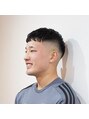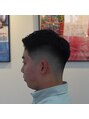 頭部に凹凸があり均等で綺麗なフェードのグラデーションが難しい方でも、写真のように馴染むようなスキンフェードが可能です。また日頃のセットが楽になるように前髪やトップのカットにも気を遣っています。