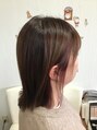 - さりげないイヤリングカラー+切りっぱなしボブカット+トリートメント
