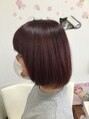 レッドバイオレット系濃いこいカラー+ツヤツヤボブカット