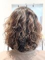 トップにレイヤーをしっかりと入ったミディアムレイヤースタイル。ハイライトが入った髪に酸性域のパーマでダメージを最小限に抑えたスタイルです。