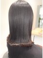 セミロングの切っぱなしスタイル。毛先のみに軽さを付けたお手入れの簡単なスタイルです。Xトリートメントで根本から艶のある仕上がりに◎