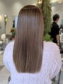 毛先まで揃ったラインと、透けるようなグレージュブラウン。髪質改善で叶える、触れたくなるシルク質感。