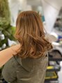 - テラコッタ系のオレンジブラウンで血色感UP。外ハネくびれミディで軽さと可愛さを両立した旬ヘア。