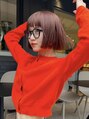 ミニボブ オレンジカラー ボブウルフ ワイドバング ボブ【Riku】
