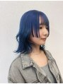 ダブルカラー/黒髪/ボブルフ/ネビージュ/原宿/前髪/青髪